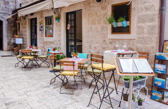Our family-owned trattoria is located in a secluded street within the Old City, next to the acquarium. Ul. kneza Damjana Jude is a quiet street with abundant shade near the bustling Old City centre.