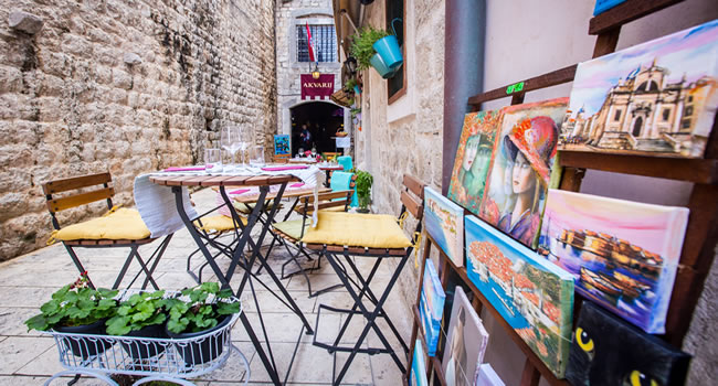 Tiny, family-run Trattoria Carmen has won the hearts of locals and visitors alike, with just a handful of tables in the narrow alley leading to the Aquarium. Come here for Italian dishes based on fresh Dalmatian ingredients, such as octopus fritters, pumpkin risotto, and marinated red mullet with rocket and fennel.